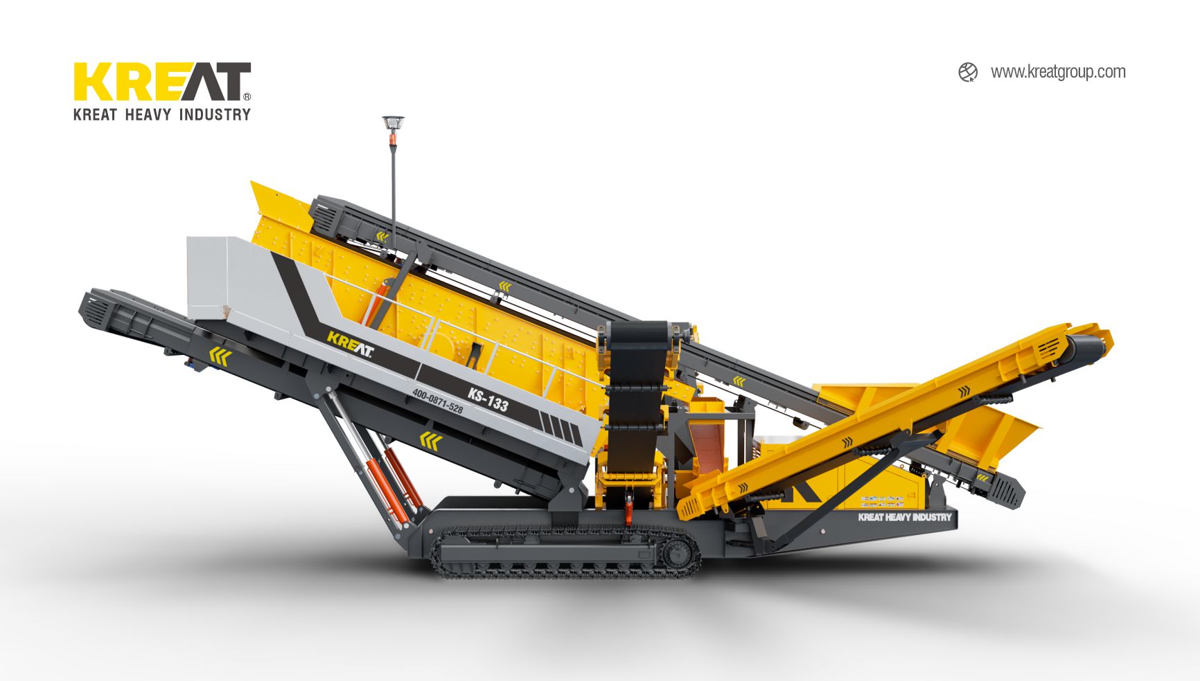 KREAT Tracks Mobile Inclined Screening KS-133 is a kind of high-efficiency screening equipment, which adopts crawler drive and walking mode, with advanced technology and complete functions. Because of its optimized unique dynamics design and intelligent process control system, it has a durable, stable and reliable high-efficiency crushing capacity, and is ideal for many independent screening or multi-stage Kairuite mobile crushing